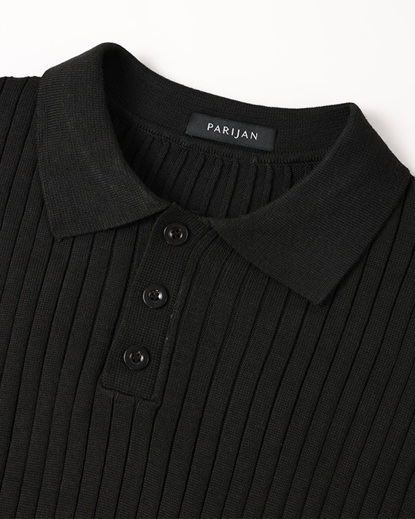 Crafted from 100% premium cotton, this long-sleeve polo delivers a smooth, breathable feel and a naturally structured drape. The vertical ribbing adds depth and texture, subtly enhancing the silhouette with understated distinction.